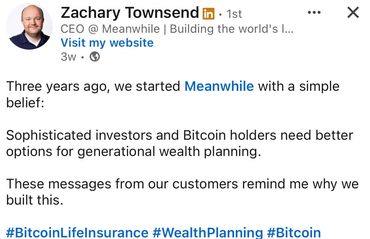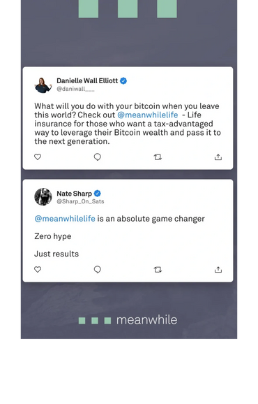 With a whole life policy from Meanwhile, your Bitcoin grows tax-free, within a regulated structure.